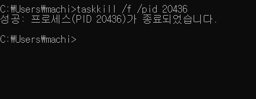 나는 taskkill /f /pid 20436 를 입력하면 된다.
