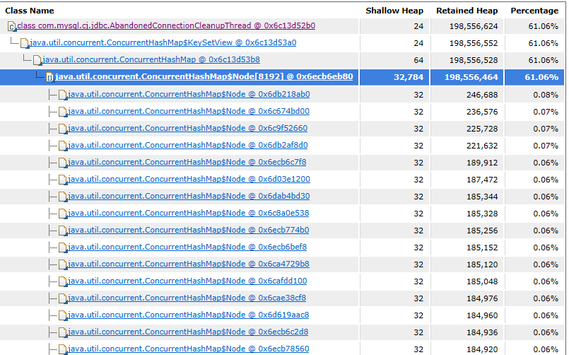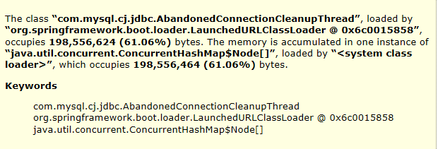 jdbc 라이브러리에서 concurrentHashMap을 사용하고 지우질 않고 있는 것 같다.